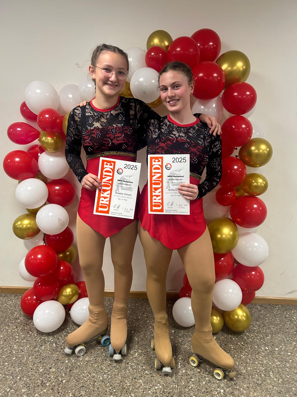Amelie und Sofia starteten bei den Anfängerinnen. Während Amelie einen guten Mittelfeldplatz erlief und sich sehr darüber freute, präsentierte Sofia ihre Elemente bei ihrem erst zweiten Start zwar deutlich besser als beim Heidepokal, konnte aber noch nicht an die starke Konkurrenz heranreichen. Im nächsten Jahr wird sie weitere schwierigere Elemente in ihrer Kür zeigen können.