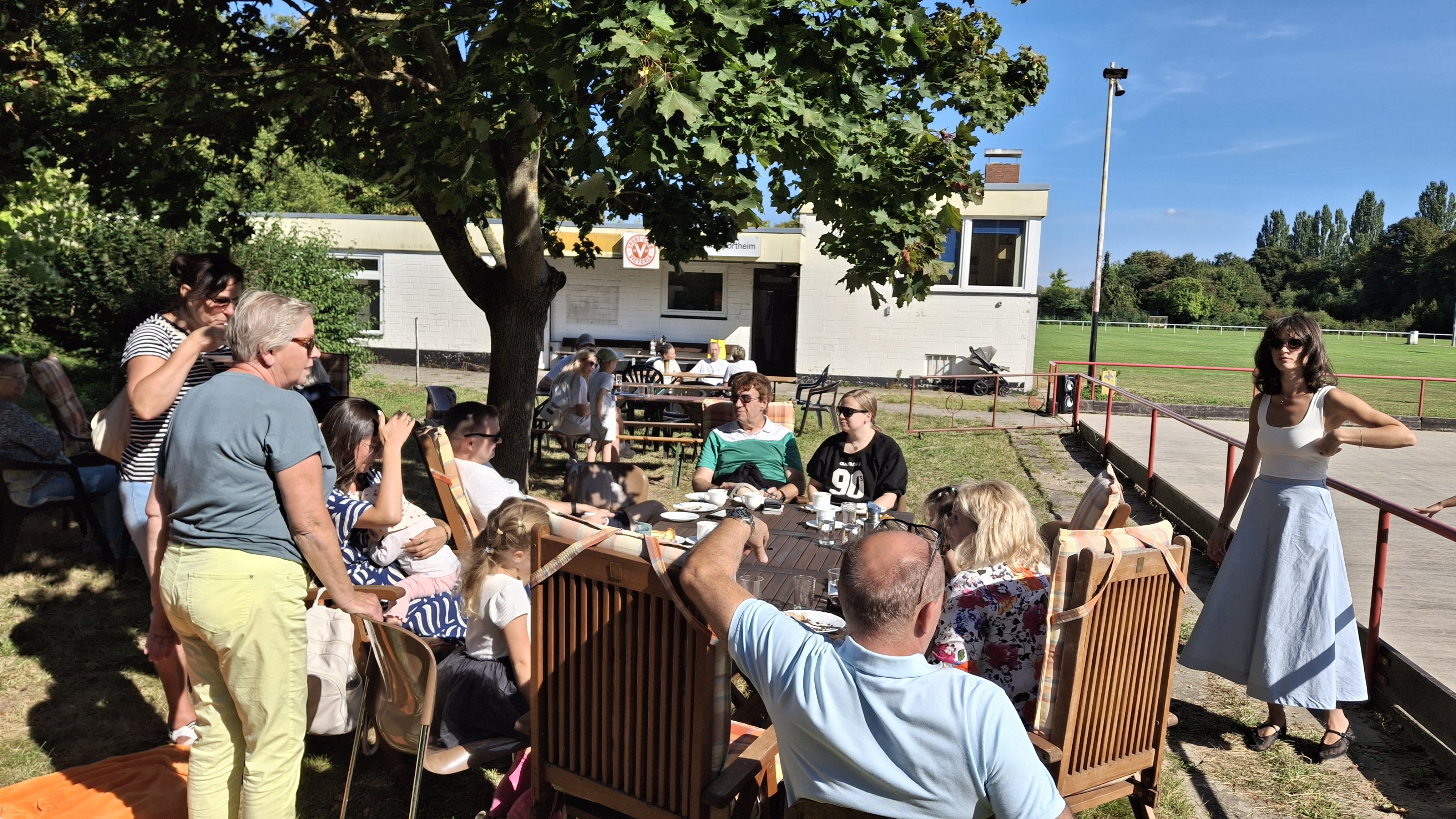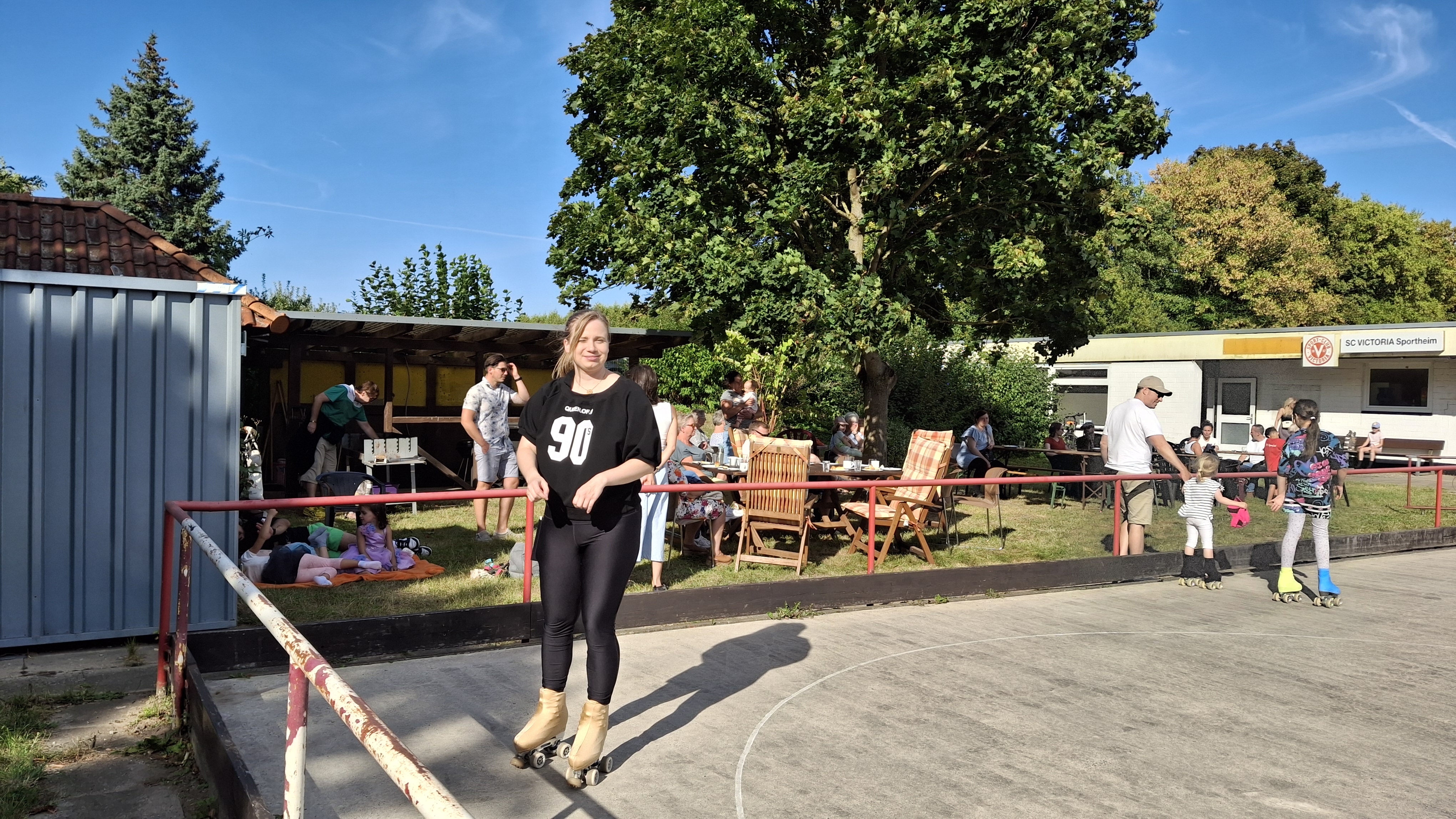 Am 7. September feierte die Rollsportabteilung ihr Sommerfest an der Rollschuhbahn. Die Läuferinnen samt Eltern, Geschwistern, Großeltern und Freunden sowie die Trainerinnen fanden sich bei schönstem Sommerwetter ein, um gemeinsam einen netten Nachmittag zu verbringen. Es gab ein umfangreiches und leckeres Kuchen- und Salatbüffet, mitgebracht von den Eltern. Später wurde auch noch gegrillt. Lilly und Julia hatten extra eine Show-Kür einstudiert, die mit großem Applaus bedacht wurde. Auch Laura zeigte ihre Wettkampfkür. Alle Aktiven bekamen die Möglichkeit, auf der Bahn zu laufen oder zu spielen. Es war ein rundrum gelungener Nachmittag.